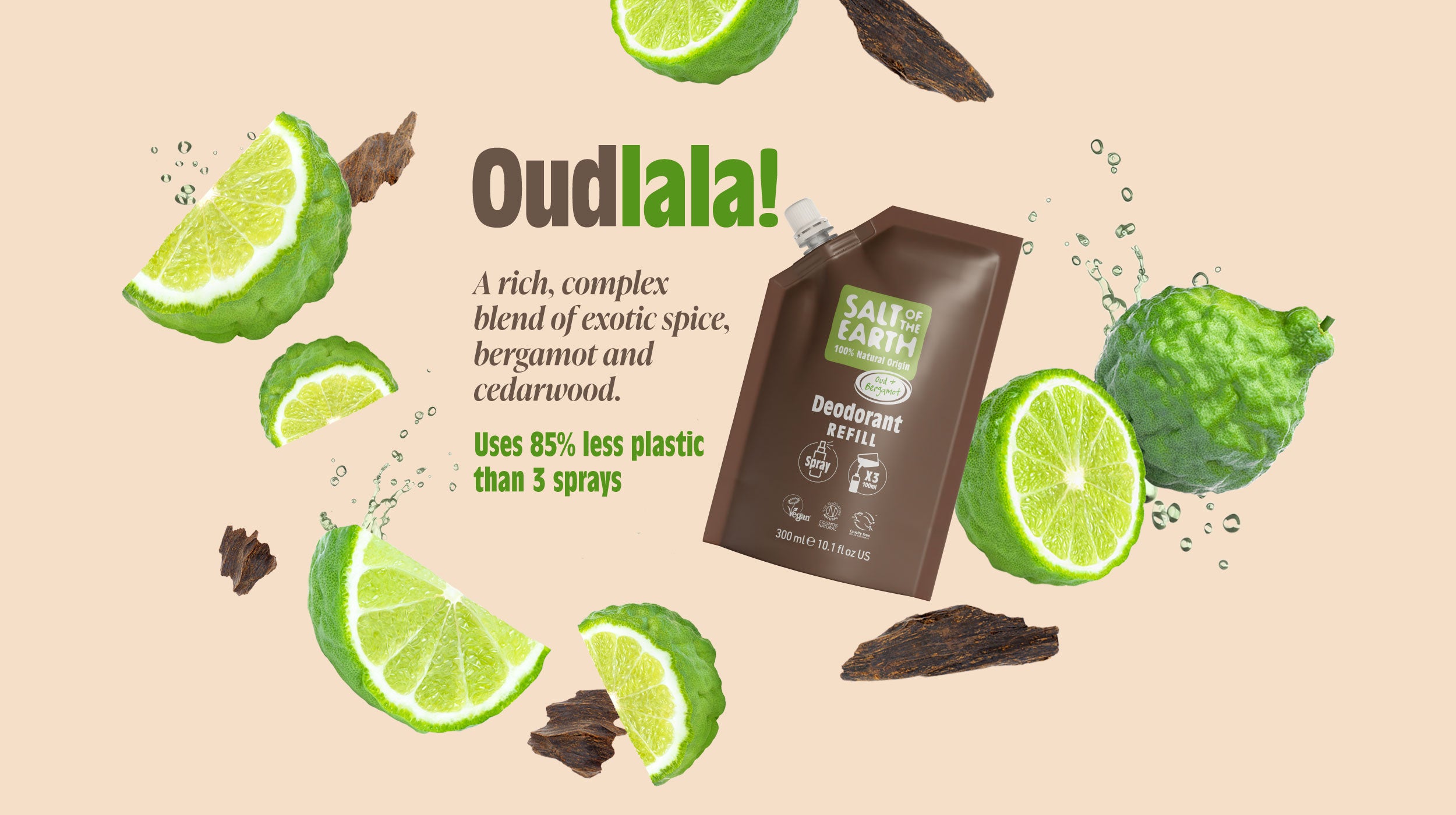 Refill pouches save up to 85% plastic versus three sprays (based on packaging weight). A sophisticated scent made smarter.
