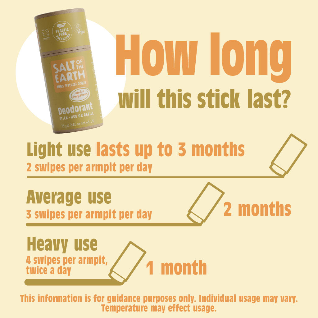 - 75g solid stick – can be used as a refill for your Salt of the Earth refillable case or on its own